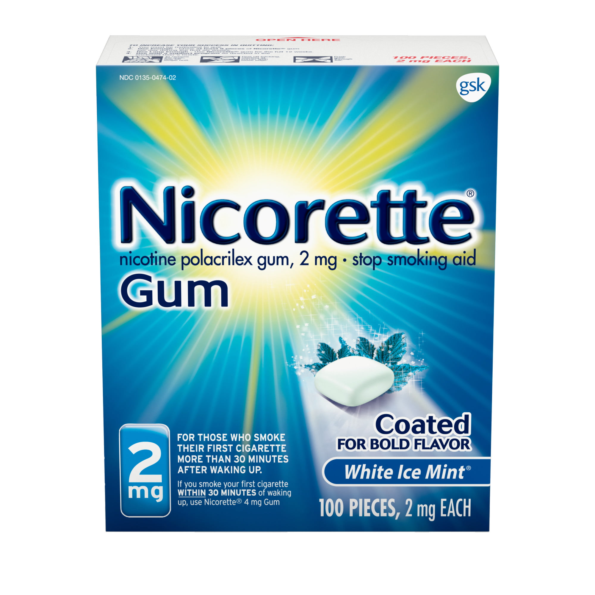 Nicorette - 2 Mg Nicotine Gum - White Ice Mint 100 Count