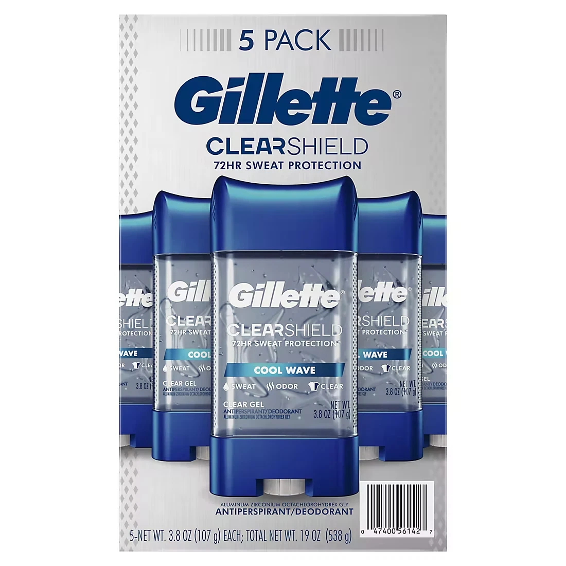 Gillette Deodorant - Clear Gel - Cool Wave - 3.8 Oz - 5 Pack